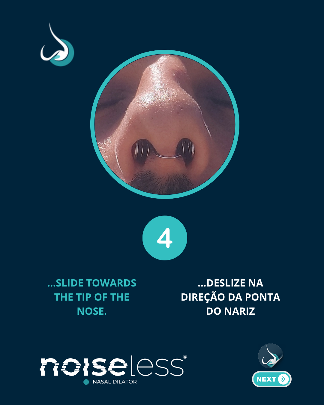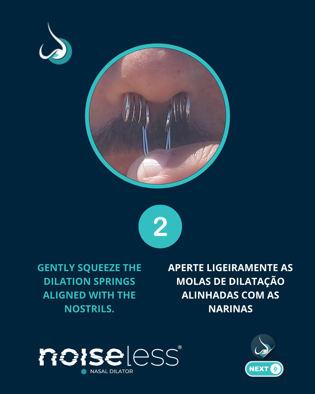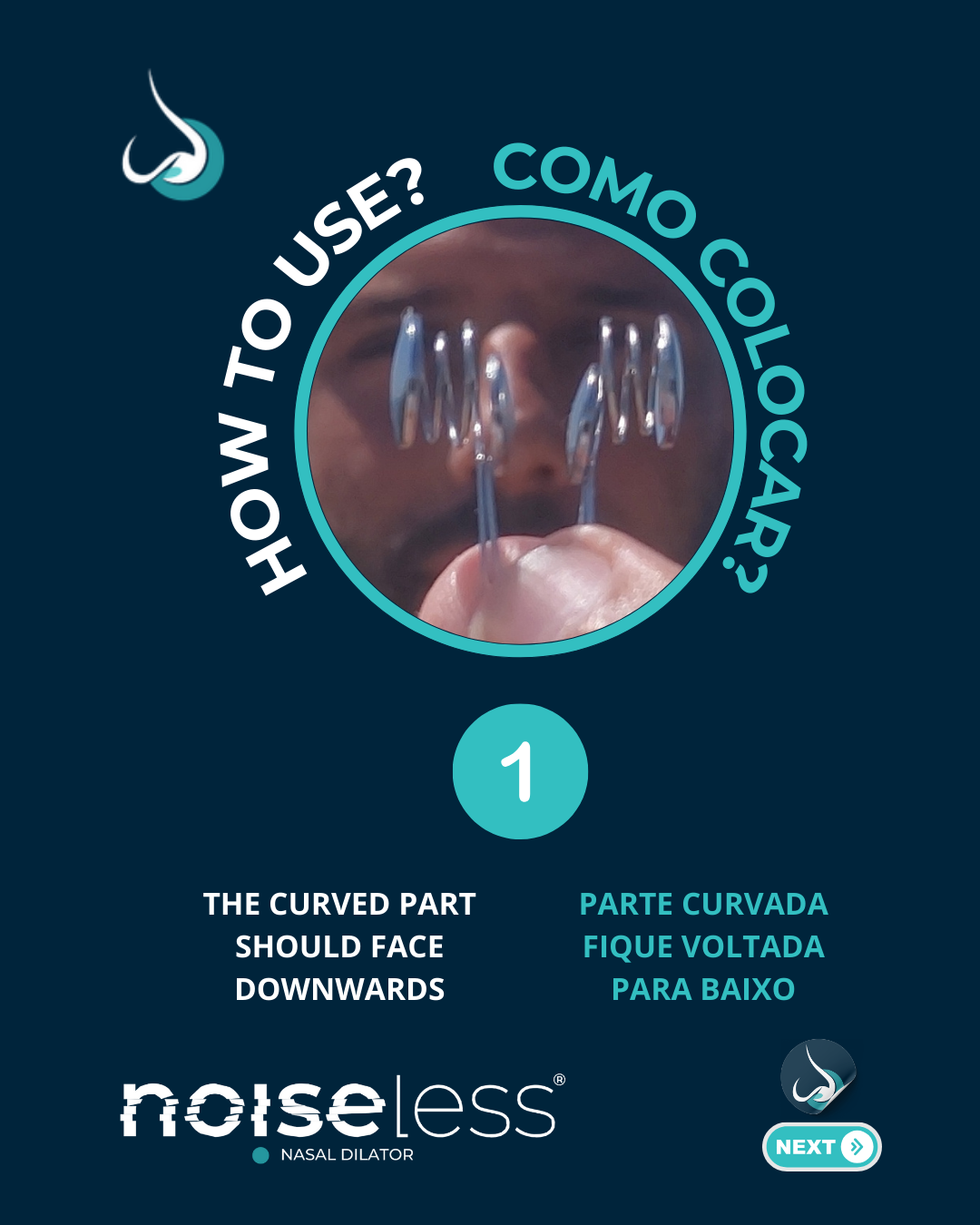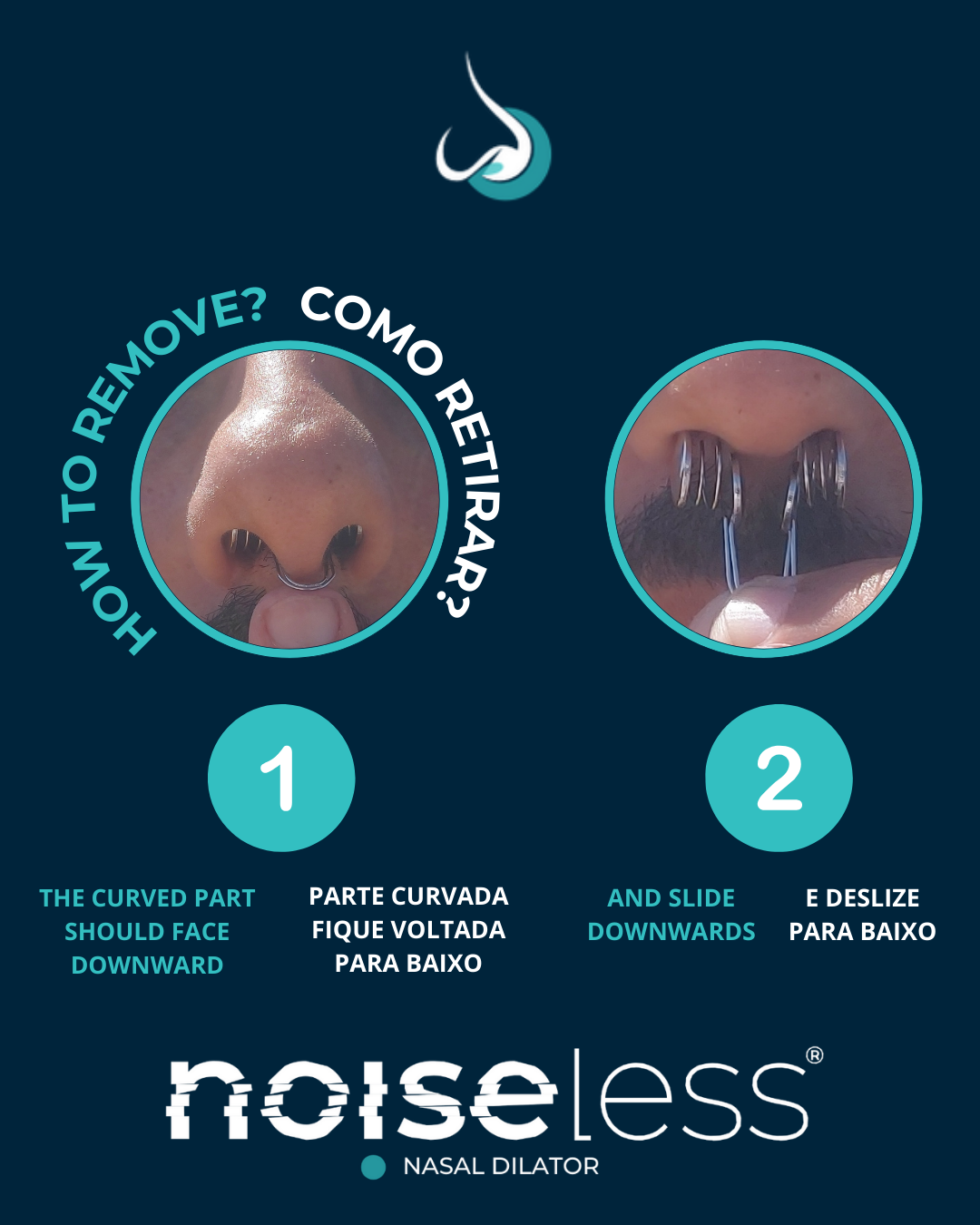 Lave as mãos antes de manusear o NOISELESS e certifique-se de que o nariz e as narinas estão limpos e sem obstruções antes da utilização.