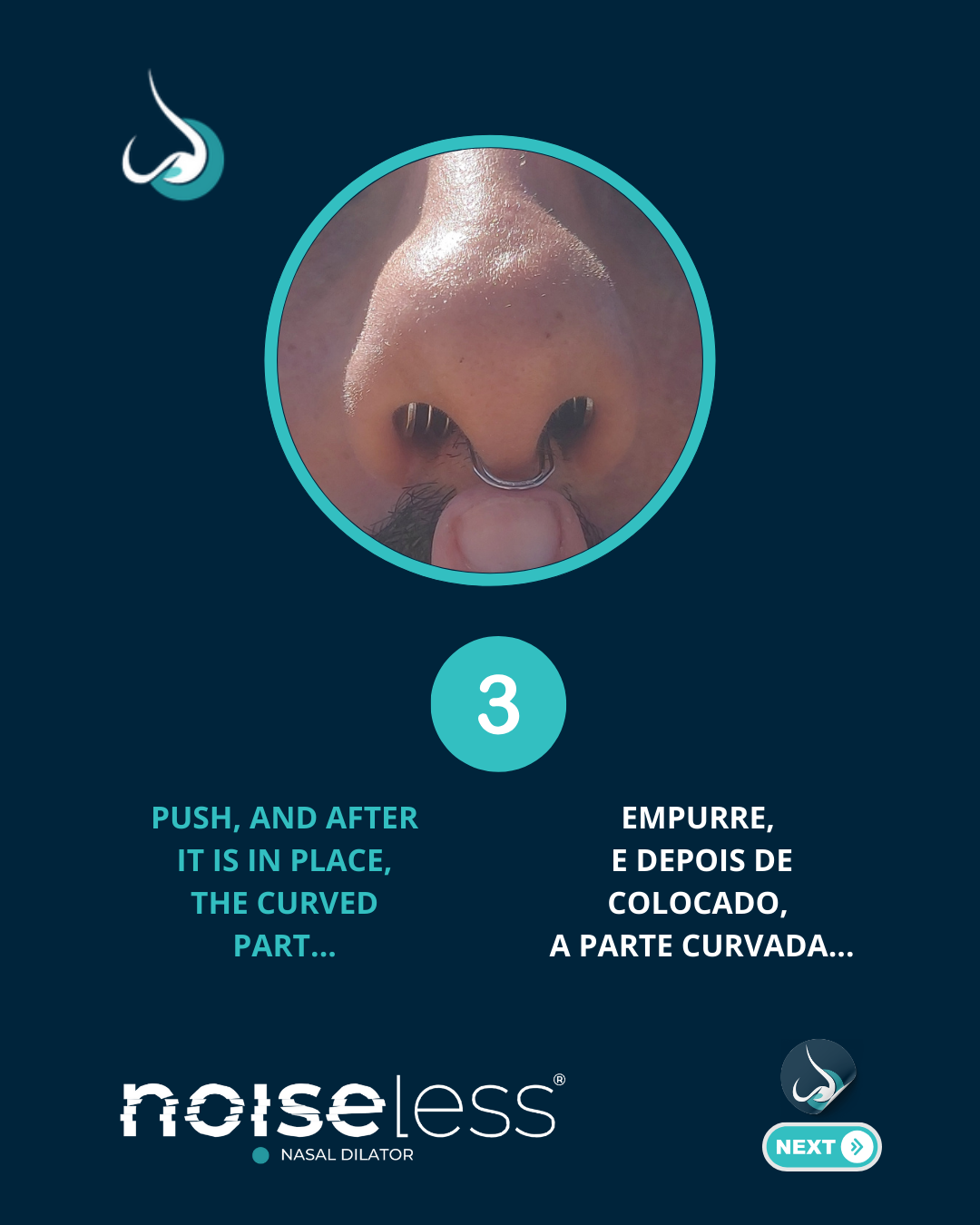 Além de reduzir o ronco, o aparelho auxiliar de respiração nasal NOISELESS melhora a qualidade do sono, ajuda a aliviar a congestão nasal e proporciona uma respiração mais eficiente durante a noite.